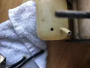 Вставьте новый топливный шланг в отверстие ближе к центру бака. (он должен заходить довольно плотно, но не слишком тяжело).