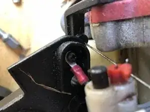 При надевании карбюратора снова подсоедините трос дросселя в то же отверстие, из которого вы его снимали.