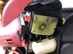 Наденьте корпус воздушного фильтра обратно на триммер.