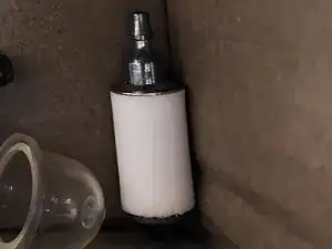 Наденьте топливный фильтр на конец шланга (см. фото с белым цилиндром).