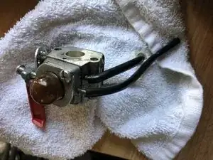 На этом шаге вы снимете топливные шланги, идущие между карбюратором и топливным баком.