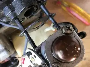 Найдя правильную ориентацию, наденьте прокладку на болты, затем карбюратор и совместите все детали.
