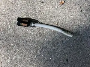 Вытяните также старый топливный шланг и фильтр из бака. (на фото показан старый снятый шланг и фильтр).
