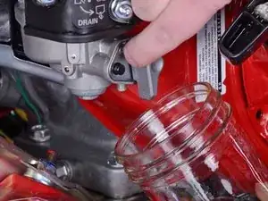 Подставьте небольшой пригодный для бензина контейнер под сливное сопло.