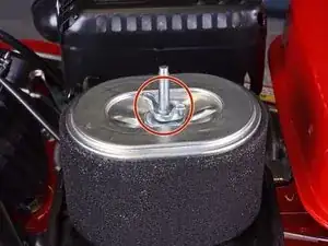 Поднимите воздушный фильтр прямо вверх с патрубка, убедившись, что он освобождает резьбовой стержень.