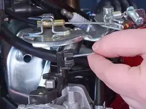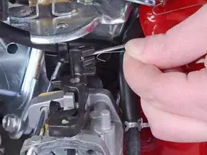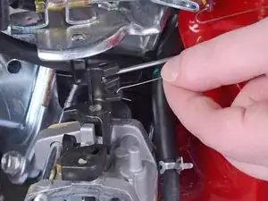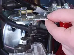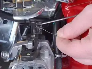 Совершите движение вверх, чтобы вынуть кончик крючка из его разъёма на карбюраторе.
