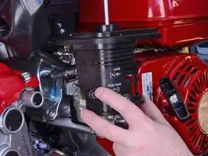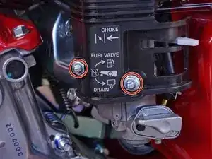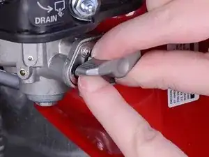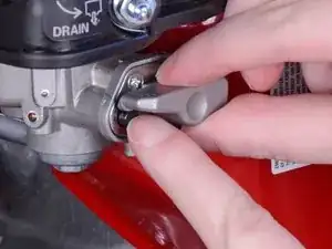 Поверните ручку топливного крана против часовой стрелки до вертикального положения вниз, чтобы слить оставшийся бензин из карбюратора.