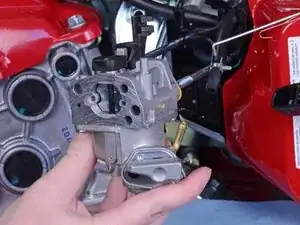 Вытащите карбюратор наполовину, но пока не удаляйте его полностью.