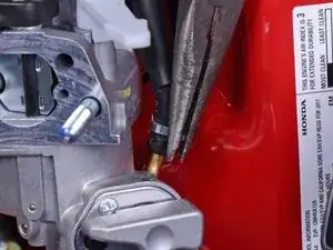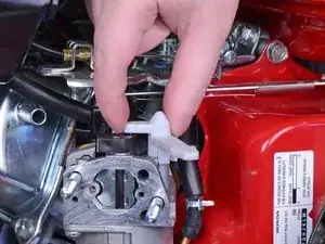 Возьмитесь за конец топливоподающего шланга и потяните его прямо вверх, чтобы отсоединить от карбюратора.