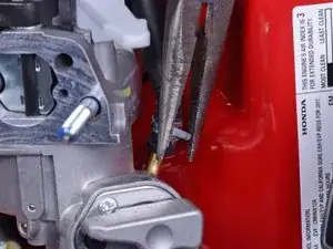 Схватите тягу регулятора и поднимите её строго вверх, чтобы извлечь из карбюратора.