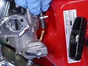 Наденьте перчатки или используйте тряпку на этом шаге, поскольку при снятии шланга начнёт вытекать бензин.