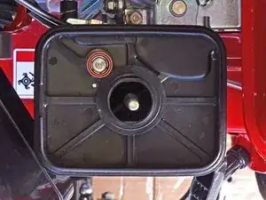 Крышка воздушного фильтра все ещё прикреплена к культиватору гибким шлангом. Вы можете отодвинуть крышку в сторону, продолжая работу, или выполнить следующие два шага, чтобы полностью снять крышку.