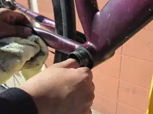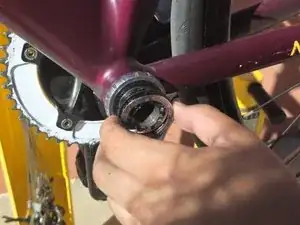 Используйте инструмент Park Tool BBT-27.3 с 16 зубцами, чтобы ослабить правую каретку, поворачивая против часовой стрелки.