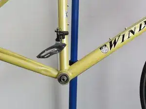 Это руководство по снятию и замене кареточного узла на велосипеде Windsor Willow. Кареточный узел — это самодостаточная опорная поверхность, на которой вращаются шатуны и ведущие зубчатые колёса. Обратите внимание, что на фотографиях заднее колесо снято, но для выполнения этой инструкции его снимать не обязательно.