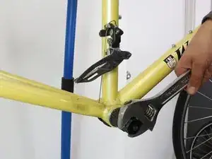 Когда ввинчивающаяся часть плотно зафиксирована внутри отверстия, поворачивайте инструмент по часовой стрелке. Это вытянет шатун с велосипеда и полностью снимет его.