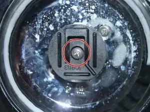 С помощью крестовой отвёртки выкрутите два винта, расположенные в верхнем правом и нижнем левом углах.