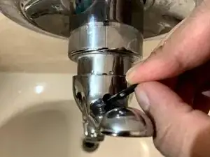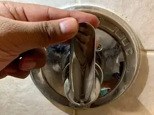 Передняя часть картриджа регулирует температуру воды. Потяните пластик на себя и поверните вправо для холодной воды, влево — для горячей. Можно оставить пластик в среднем положении, но в этом случае температура воды будет менее точной и может быть слишком холодной или слишком горячей.