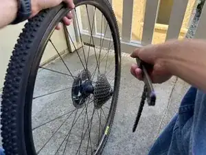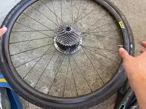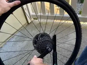 Положите колесо на твердую поверхность так, чтобы кассета была с правой стороны.