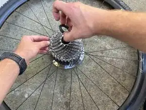 Наденьте стопорное кольцо кассеты на верхнюю звездочку.