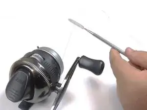 Откройте переднюю крышку катушки Zebco 33, повернув её влево и сняв её вертикально.