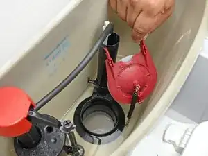 Если рычаг смыва или цепочка отвязались, поднимите клапан туалета, чтобы слить бачок.