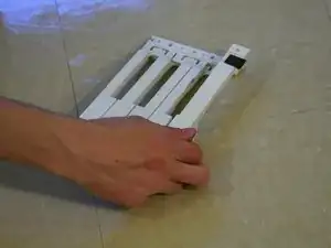 Нажмите на зажим с задней стороны блока клавиш и отсоедините черные клавиши.