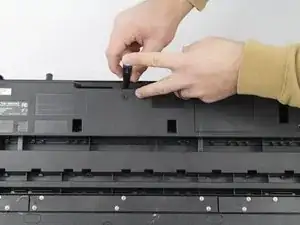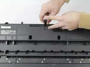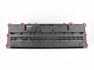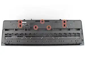 Снимите семь винтов Phillips #1 длиной 10 мм на нижней стороне клавиатуры, которые крепят центральную переднюю панель.