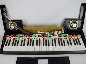 Звук воспроизводится путем передачи этого сигнала через главную плату, направляя нажатие к динамикам, которые создают звук для конкретной клавиши. Если любая часть клавиши повреждена, возможно, она не будет издавать звук или будет оставаться в опущенном положении. В этом случае клавишу необходимо заменить.