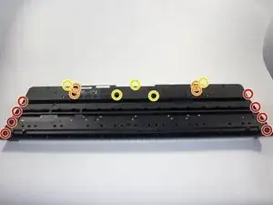 Вам потребуется открутить 17 винтов длиной 11 мм крестовой отверткой JIS-1, чтобы отделить заднюю часть клавиатуры от передней.