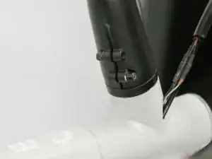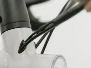 Запихните провод в раму, пытайтесь засунуть его вниз, а не назад (в сторону дисплея). Чтобы проверить, правильно ли он вставлен, поверните руль максимально влево. Вы должны почувствовать жёсткую упорную точку, сравните с правой стороной. Если ощущается мягкость (демпфирование), снова вставьте провод и проверьте ещё раз.