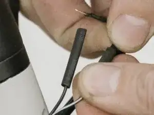 Снимите изоляцию с обоих проводов и соедините их пальцами, чтобы проверить правильность проводки (при включённом велосипеде должна меняться мощность).