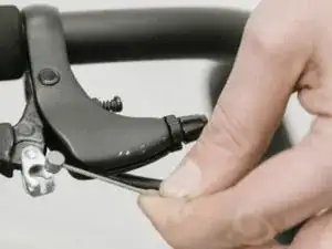 Потяните правую тормозную ручку и снимите трос тормоза с ручки.