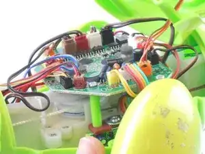 Отсоедините провод, соединяющий заднюю крышку динозавра с основной платой, аккуратно потянув оранжевый разъём пинцетом.