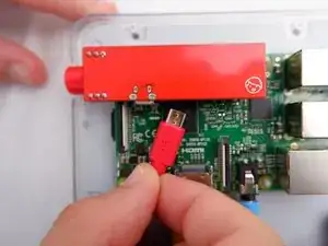 Аккуратно поднимите красную кнопку питания с Raspberry Pi.