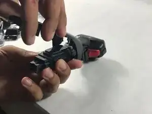 Подвиньте переключатель блокировки вверх и снимите скрытый под ним винт 6 мм.