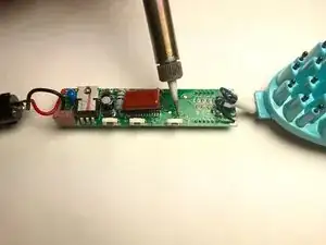 Возможно, вам придется отогнуть темно-красный конденсатор, чтобы добраться до мест пайки.