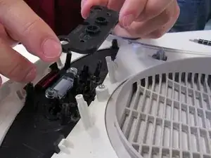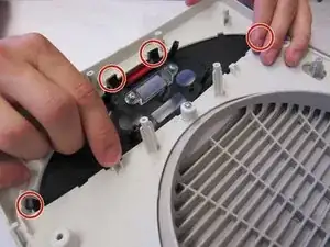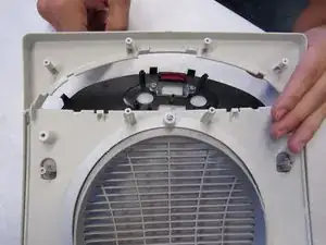 Снимите переднюю крышку с задней части вентилятора и медленно опустите переднюю крышку на пол.