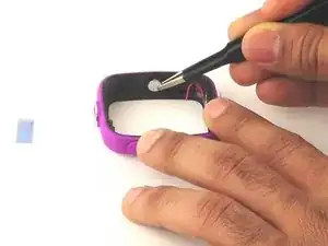 С помощью пинцета снимите синюю резиновую накладку с задней стороны кнопки.