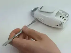 С помощью пластикового инструмента для открывания разъедините переднюю и заднюю части устройства. Существует множество точек доступа, но лучше всего вставить лопатку в область кнопки "TALK".