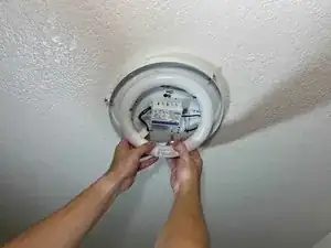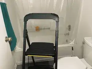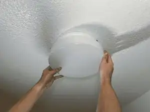 Установите устойчивую стремянку под светильником. Для выполнения этой замены вам потребуется дотянуться до потолка, поэтому убедитесь, что вы не упадёте при работе на высоте.