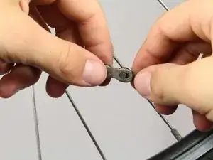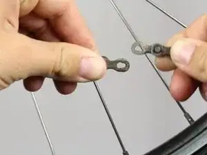 Чтобы разъединить главное звено, удерживайте левую часть звена в левой руке, а правую часть — в правой руке. Сожмите два звена друг к другу, чтобы освободить фиксатор. Разведите звенья в стороны, одна рука тянет на себя, другая — от себя. Это разъединит звенья цепи.