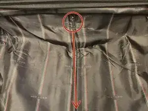 Расстегните внутреннюю отделку на стороне чемодана, где находится сломанное колесо.