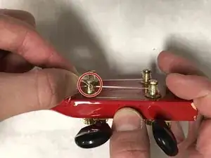 Полностью размотайте струну, соединенную со сломанным колком, поворачивая черный механизм по часовой стрелке.