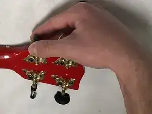 Переверните укулеле и запомните расположение винтов, крепящих колки к головке укулеле.