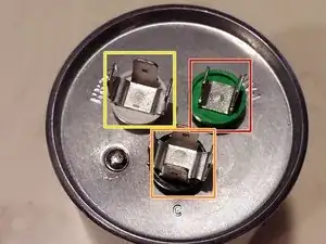 Используя изолированную отвёртку, кратко закоротите по две клеммы конденсатора одновременно, чтобы снять остаточный заряд.