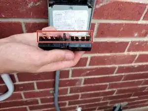 Внимание: используйте бесконтактный тестер напряжения или мультиметр, чтобы убедиться, что рубильник не находится под напряжением. Если у вас нет мультиметра, постучите по корпусу рубильника тыльной стороной руки. Если вы используете ладонь и имеется напряжение, рука сожмётся, и будет трудно отдернуть её от корпуса.