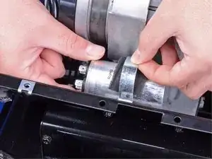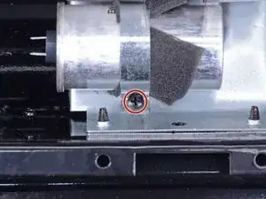 Используйте крестовую отвертку, чтобы удалить винт, закрепляющий хомут ремня конденсатора.