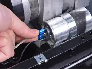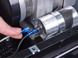 Возьмитесь за черный и белый провода за их разъемы и крепко потяните, чтобы отсоединить их от конденсатора.