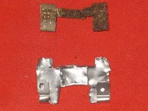 Старые, корродированные клеммы рассыпались при снятии, поэтому я нашёл кусок металлолома из другой игрушки и сделал что-то похожее по форме.