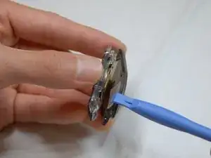 Вставьте пластиковый инструмент для открытия в шов устройства.